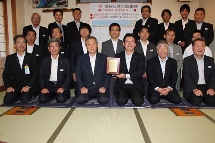 【松江】島根日産(櫻井誠己社長)が、今年も日産系ディーラーによる日本自動車連盟(JAF)入会促進キャンペーンの目標達成率で全国トップに輝いた。11年連続の快挙。9日には松江市内で祝賀会が催され櫻井社長に感謝状が手渡された。 これは「日産自...