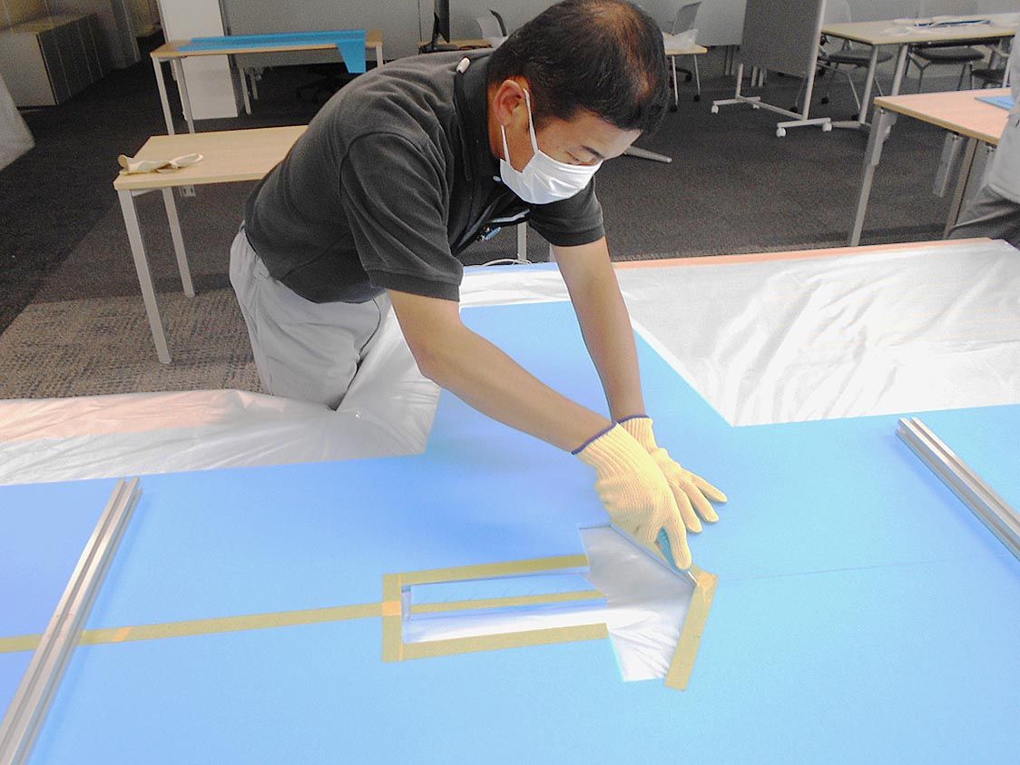 ガウンは産業医のアドバイスなどを採り入れながら、同社の生産技術開発部署が中心となって開発した。素材は物流で使用している梱包シートを活用し、専用のトリム治具を使って作業効率を上げている。5月中旬から追浜工場や横浜工場、日産自動車九州などで生産を行っており、今後は愛知機械でも生産する予定だ。