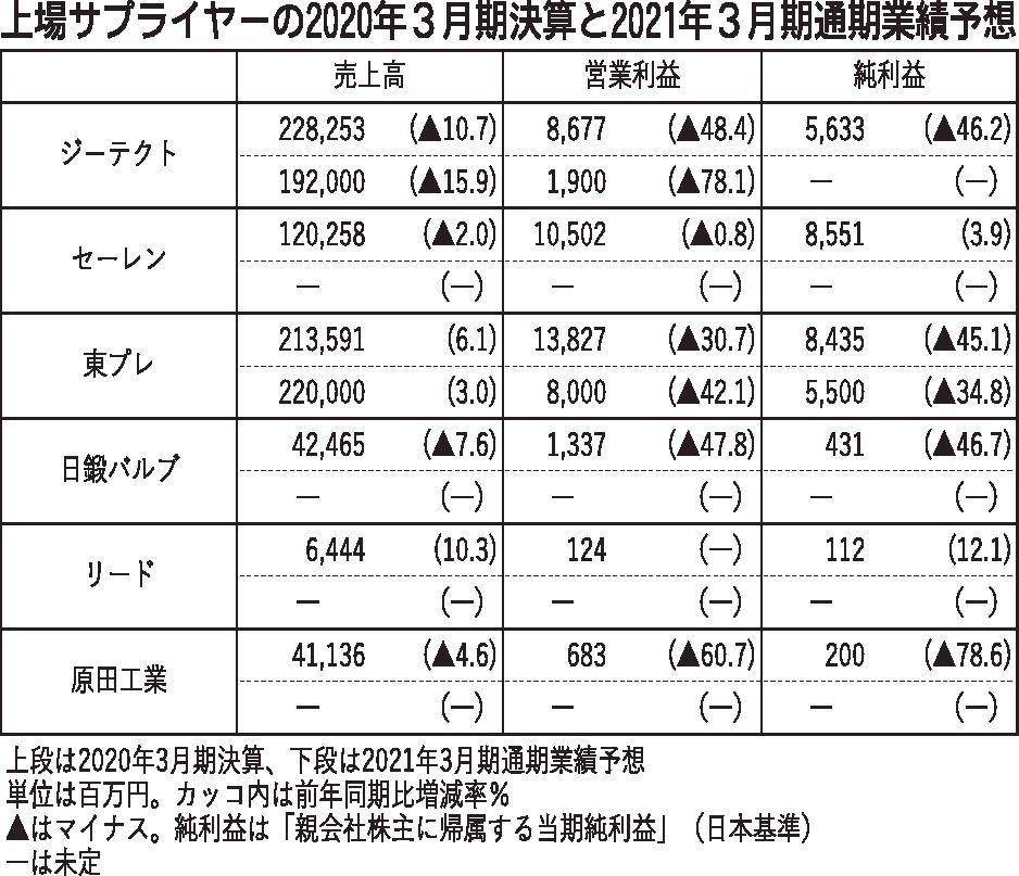 〈上場サプライヤー2020年3月期決算と2021年3月期通期業績予想〉