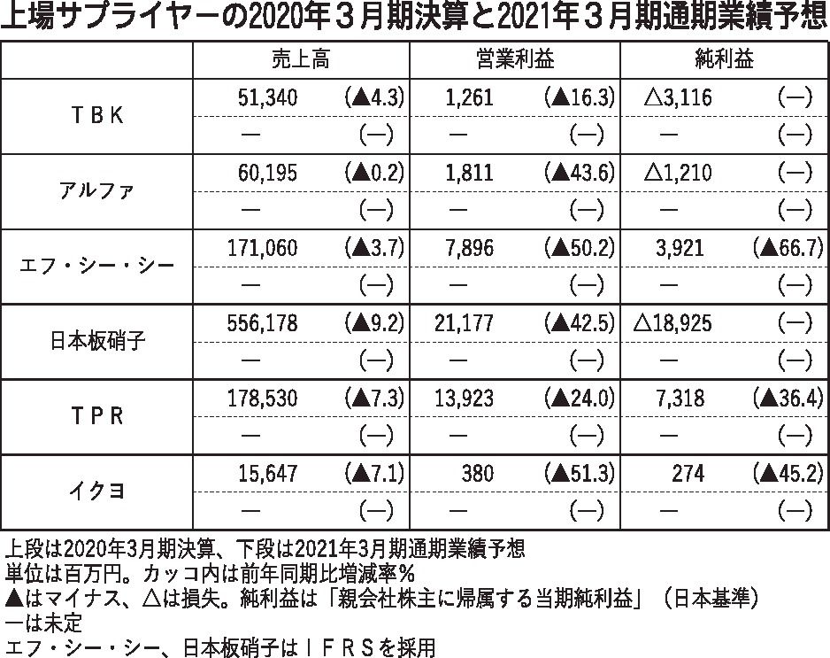 〈上場サプライヤーの2020年3月期決算と2021年3月期通期業績予想〉