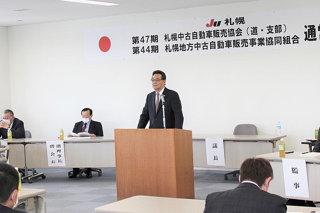 【札幌】札幌地方中古自動車販売協会・同事業協同組合(JU札幌、問谷功三会長・理事長)は、通常総会をJU札幌会場で開いた。新年度の事業計画などを審議し、全て承認可決した。 冒頭、問谷会長は「昨年度の中古車オークション(AA)事業は出品、成約...
