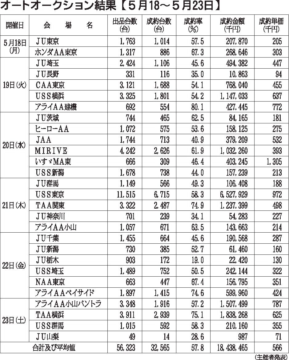 〈オートオークション結果【5月18~23日】〉