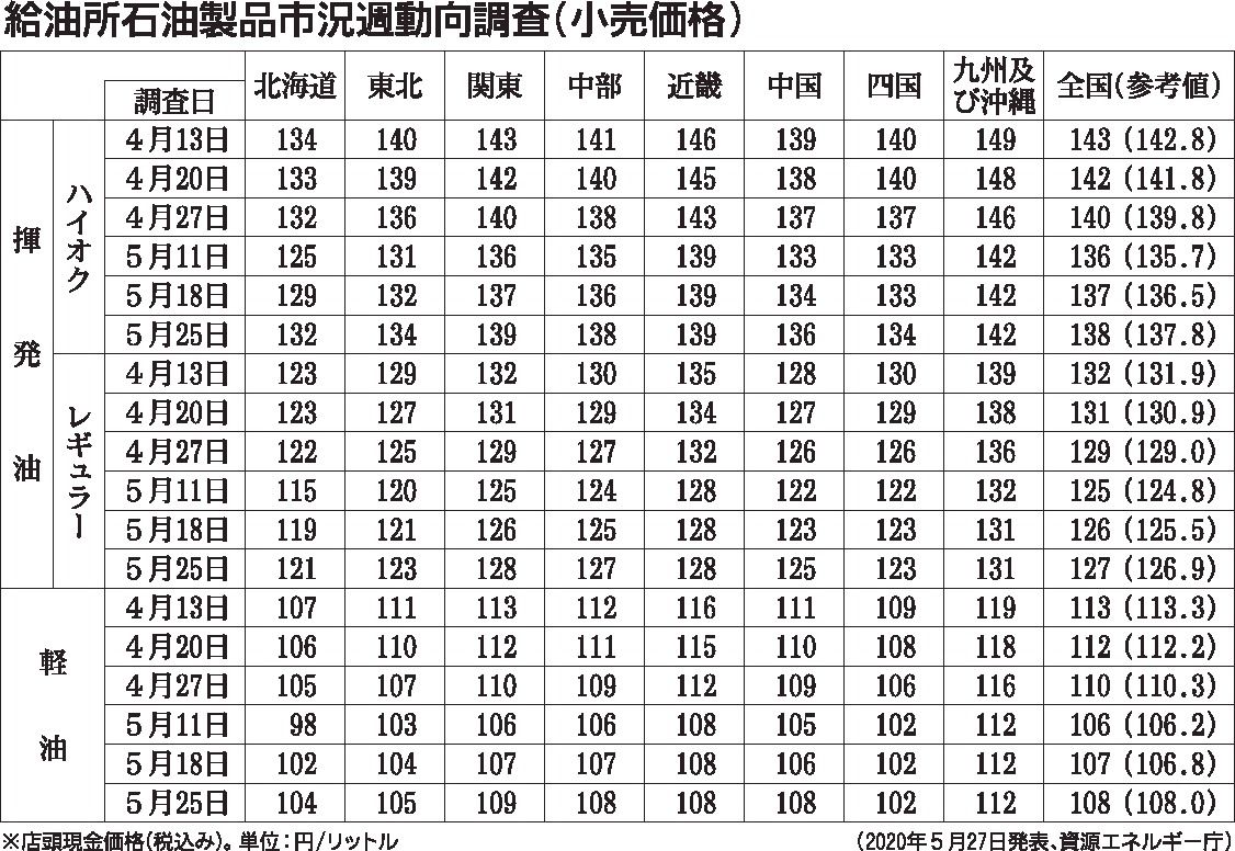 〈給油所石油製品市況週動向調査(小売価格)〉