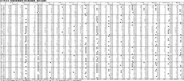 2017年8月の地域別新車販売は、全体が前年同月比5・5%増、35万5434台と伸びたこともあり、熊本を除く全地域で前年実績を上回った。伸び率が大きかったのは、北見(同27・0%増)、帯広(同19・9%増)などで、7地域が2桁増を記録した...