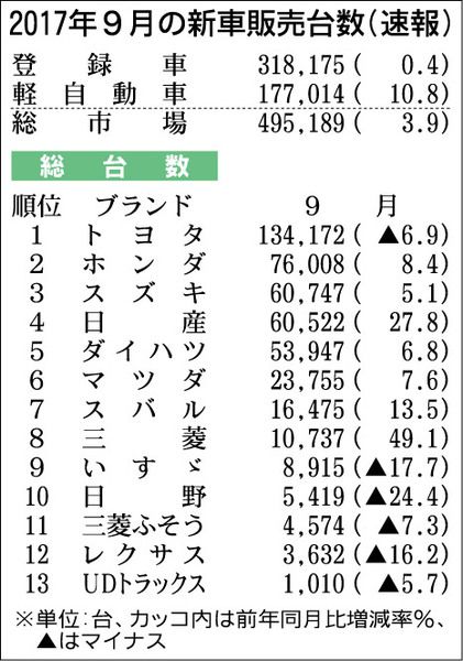 17年度上期 新車販売、5年ぶりに増加 軽15%増でプラス転換