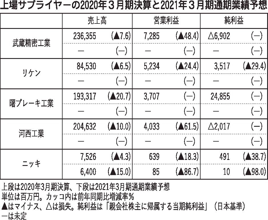〈上場サプライヤーの2020年3月期決算と2021年3月期通期業績予想〉