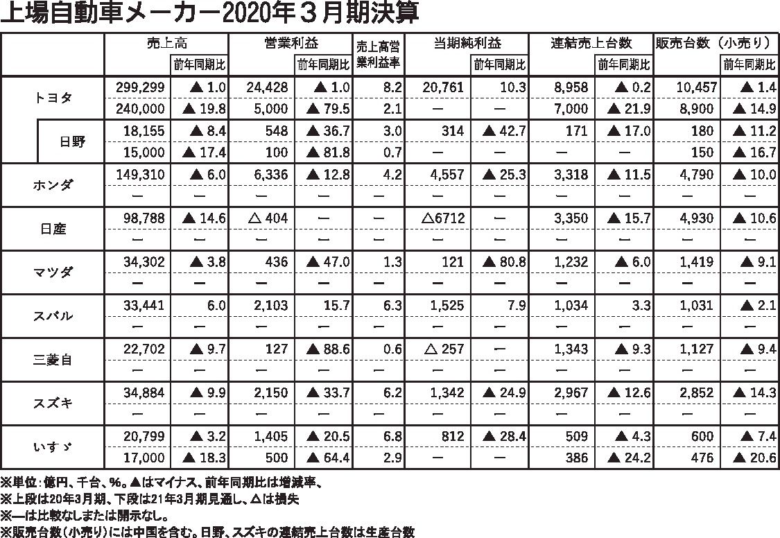 上場する自動車メーカーの2020年3月期決算は、スバルを除く8社が減収減益となり、そのうち2社が最終赤字に転落した。新型コロナウイルスや為替の影響を除けば、トヨタ自動車やホンダは増益になるはずだった。世界的な新車需要の低迷や円高による輸出...