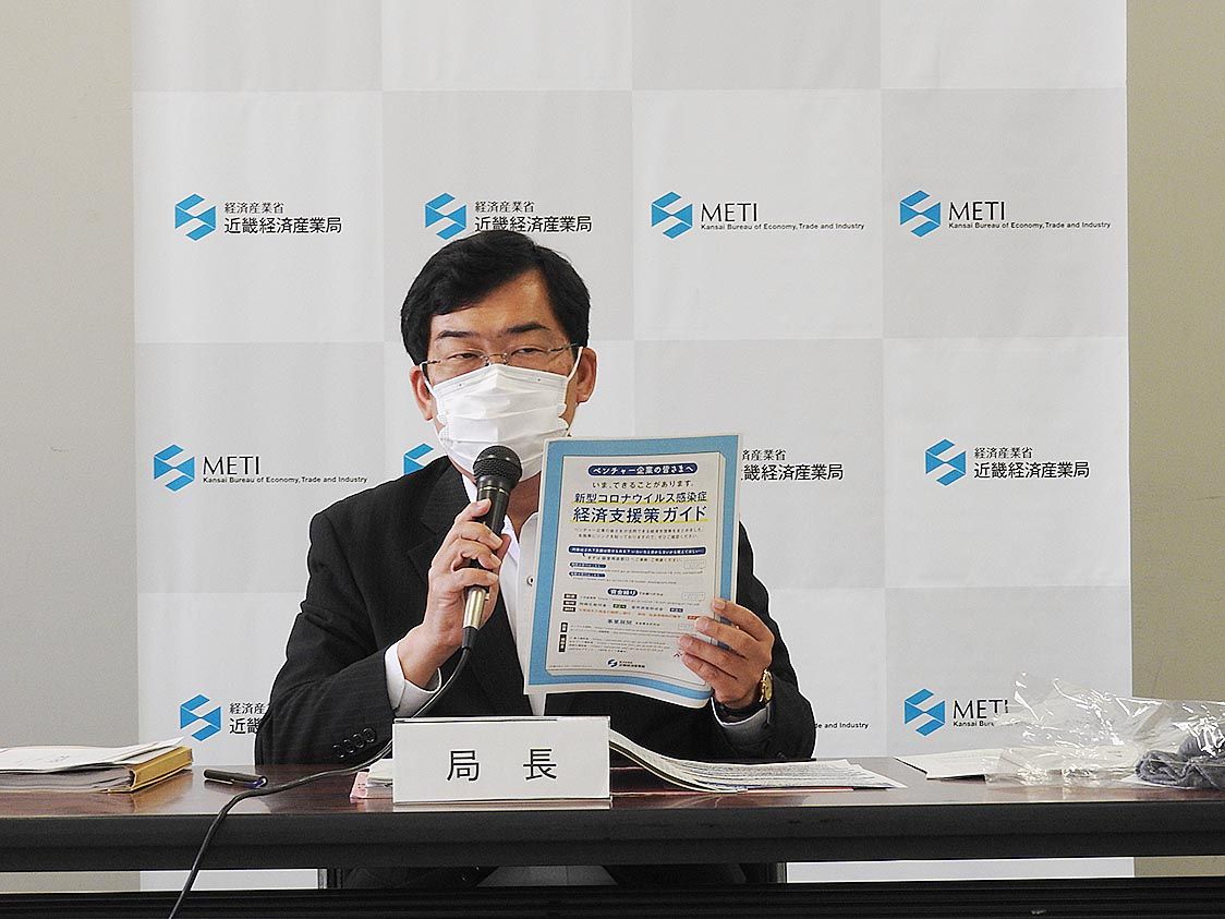 【大阪】近畿経済産業局の米村猛局長は5月21日、大阪市中央区の局内で開いた定例記者会見で、感染症に伴う経済支援策の一環としてベンチャー企業向けの「新型コロナウイルス感染症経済支援策ガイド」を同局で独自に作成したと発表した=写真。ベンチャー...