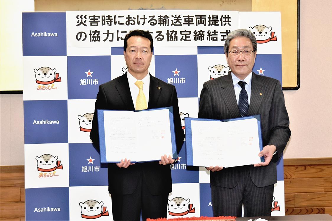 【旭川】旭川レンタカー協会(浅田勝広会長)は、旭川市と「災害時における輸送車両提供の協力に関する協定」を締結した。地震や台風など災害が発生した際、応急対応で必要な車両を、通常料金の30~50%割引いた料金で市に貸し出す。 旭川市役所で行っ...