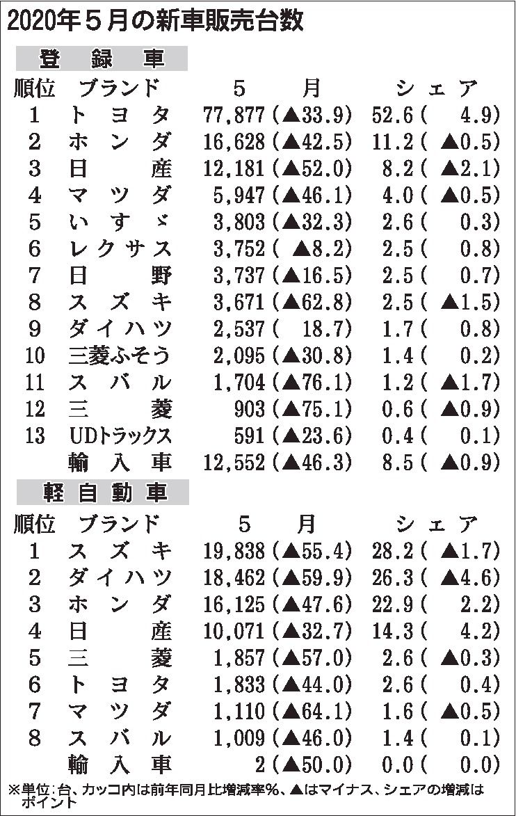 〈2020年5月の新車販売台数〉