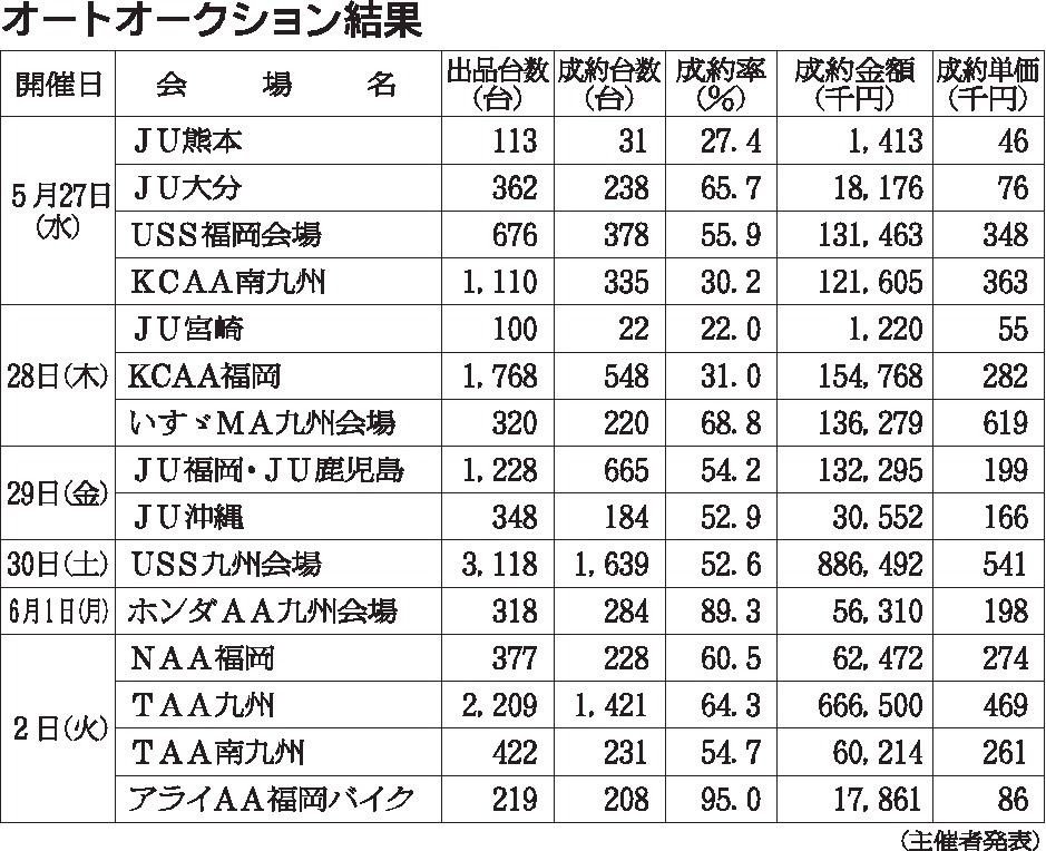 USS九州会場、2025年度AAで出品台数・成約率ともに過去最高