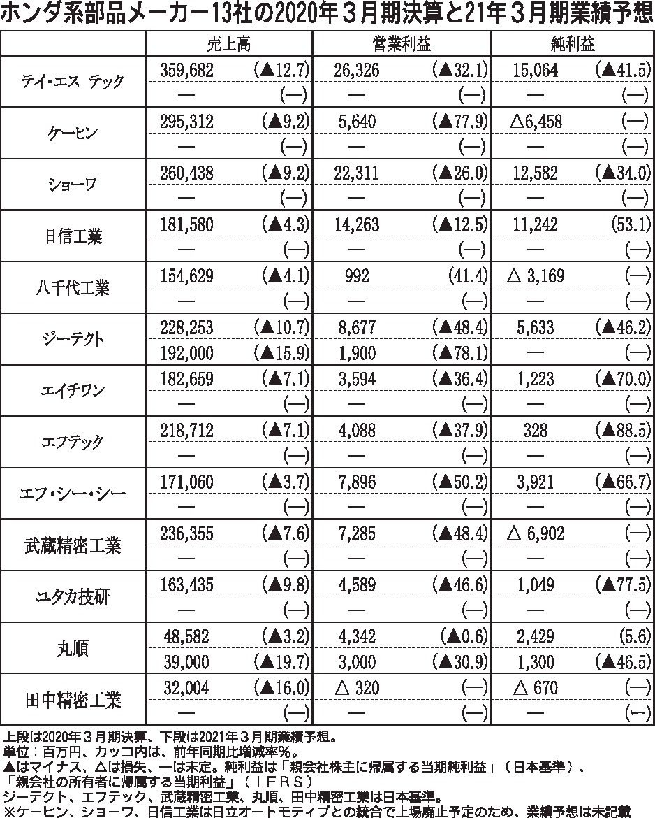 ホンダ系サプライヤー13社の2020年3月期決算は、12社が前年同期に対し減収減益となった。米中貿易摩擦による中国市場の減退やインド市場の冷え込みが響いた。加えて、第4四半期には新型コロナウイルス感染拡大で需要が減少し、各社とも生産調整を...