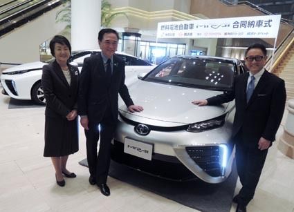 神奈川県と横浜市は5日、合同でトヨタ自動車の燃料電池自動車(FCV)「ミライ」の納車式をみなとみらい地区(横浜市西区)にあるホテルで実施した。出席した豊田章男社長は「ミライをたくさん運転していただき、未来の車は楽しいと感じてもらえたら大変...
