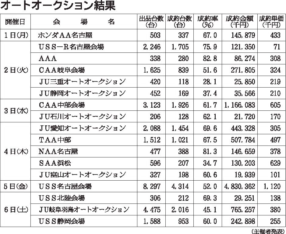 〈オートオークション結果〉