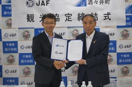 【千葉】日本自動車連盟(JAF)千葉支部(加藤勇支部長)は酒々井町と観光協定を締結、13日に町役場で締結式を実施した。同協定はJAFの会員向けサービスの拡充と自治体の観光・産業振興を目的に行っているもので、今回で県内18市町村となる。 締...