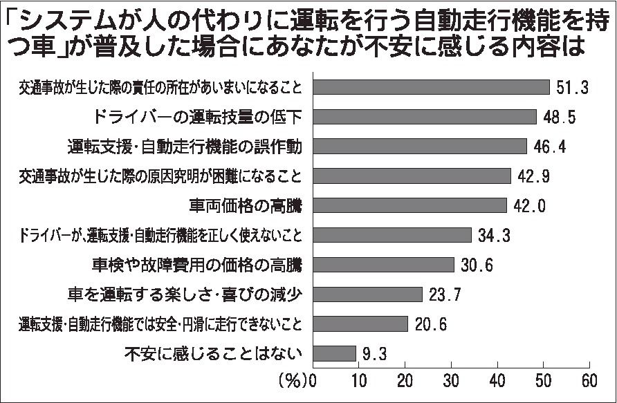 〈損保ジャパン 自動運転車アンケート〉責任所在や誤作動に不安 居住エリアでの実験には肯定的