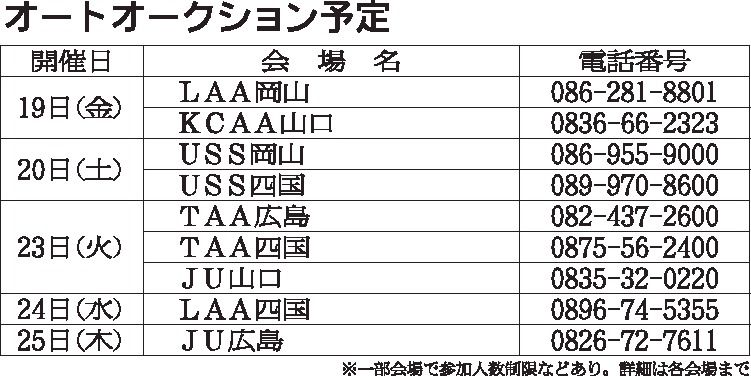 〈オートオークション予定〉中四国地区