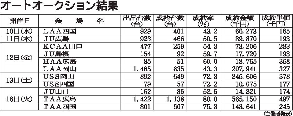 〈オートオークション結果〉中四国地区