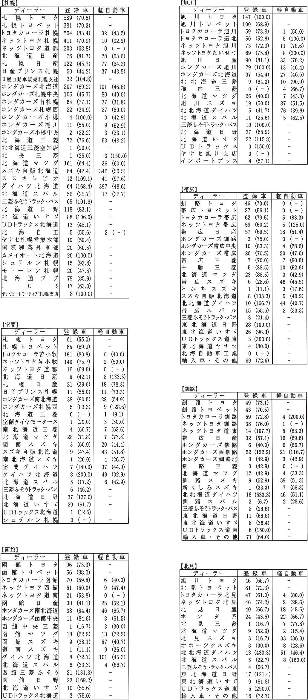 〈5月度全道管内別ディーラー別新車登録・届け出台数〉