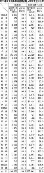17年度上期の都道府県別輸入車新規登録台数は、京都をはじめ6府県で2桁増となった。大市場では東京、神奈川、大阪がプラスを確保。千葉は2桁近い伸びを示した。 これに対し愛知は同7・0%減、埼玉が同6・5%減、福岡も同1・3%減となっている。...