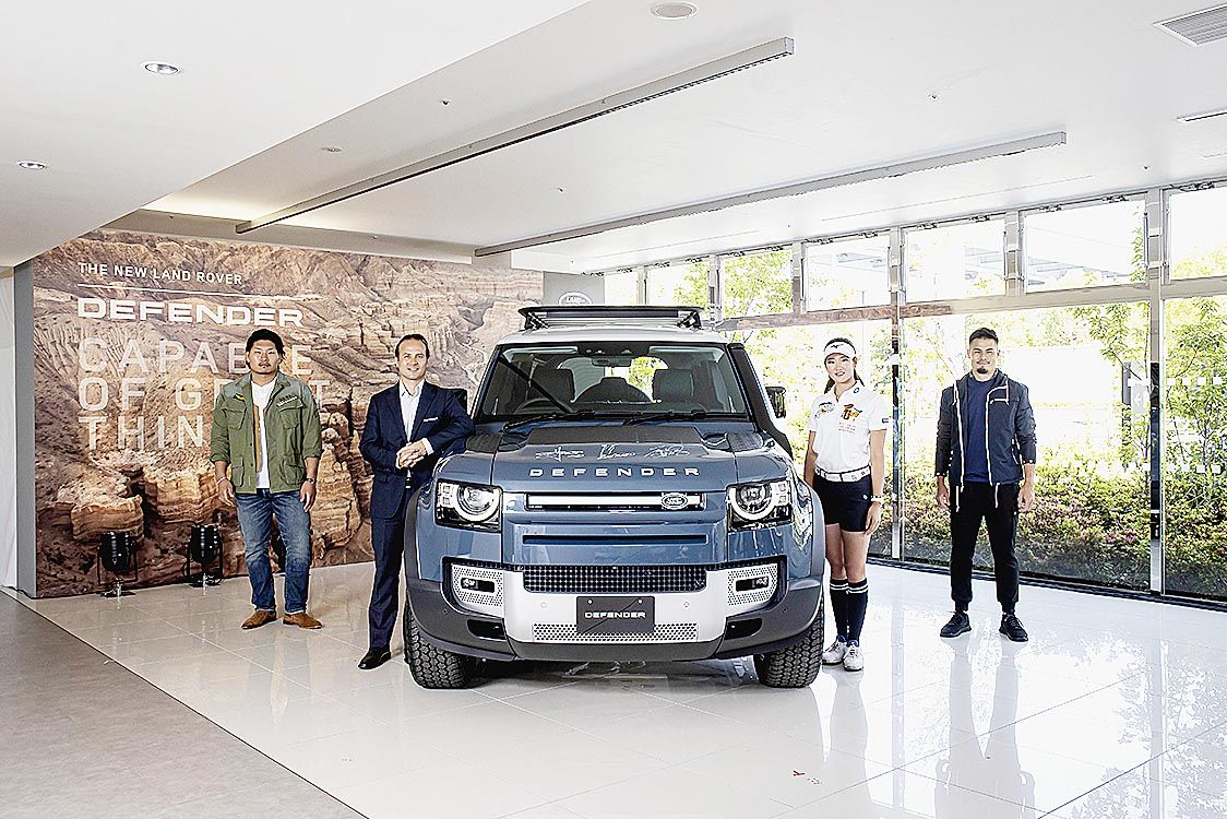 マグナス社長左から2人目=は「ランドローバーで最も伝統的なモデルが復活の時を迎えた。昨年のラグビーワールドカップで日本代表主将のリーチ・マイケル選手がドライブしたことで多くの消費者が印象に残っているはず。究極のSUVとして日本市場に相応しいモデルだ」などと述べた。