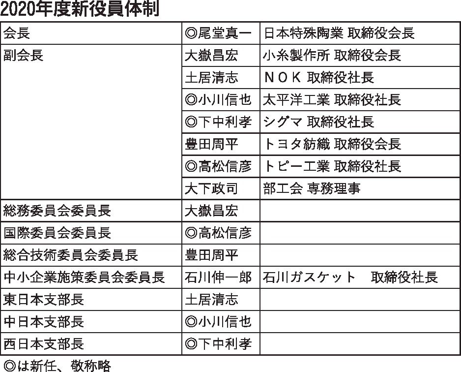 日本自動車部品工業会(部工会、尾堂真一会長)は18日に行った記者会見で、2020年度の新役員体制を発表した。新任は尾堂真一会長(日本特殊陶業代表取締役会長)のほか、小川信也副会長(太平洋工業取締役社長)、下中利孝副会長(シグマ取締役社長)...