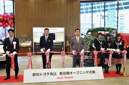 愛知トヨタ(山口真史社長)は6日、建て替え工事を進めていた高辻営業所のオープン式典を催した。同社が80年前に販売したトヨタ1号車の「G1型トラック」のレプリカと昨年12月に発売した燃料電池自動車(FCV)「ミライ」を並べて対比し、次世代自...