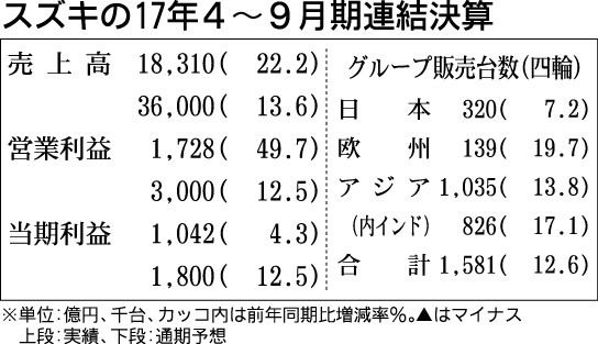 スズキは2日、2018年3月期通期の業績見通しを上方修正して発表した。二輪・四輪とも販売台数見通しを上乗せしたほか、為替の前提を円安方向に見直した。従来予想は増収減益の見通しだったが、修正により増収増益となる。 従来見通しに対し、売上高を...