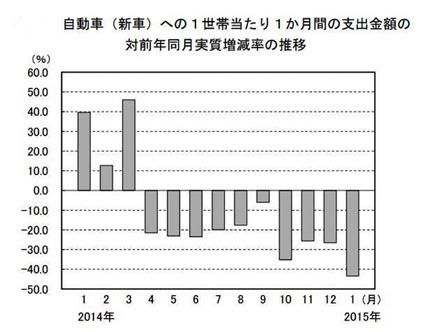 新車への家計支出が減っている。総務省の家計消費状況調査によると、1世帯当たりの新車支出月額は今年1月で8215円。前年同月と比べた名目増減率は41・8%の大幅減少で、昨年4月以来、10カ月連続でマイナスが続く。消費増税に伴う駆け込み需要の...