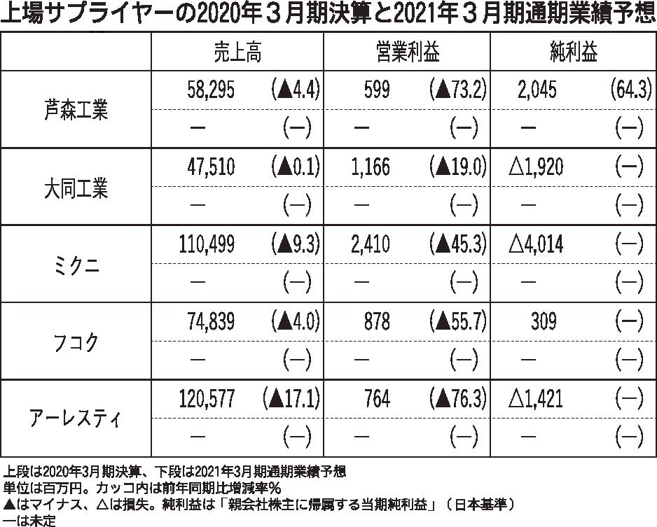 〈上場サプライヤーの2020年3月期決算と2021年3月期通期業績予想〉