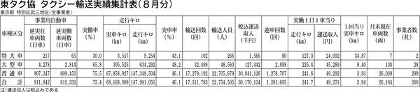 【東タク協 タクシー輸送実績集計表(8月分)】