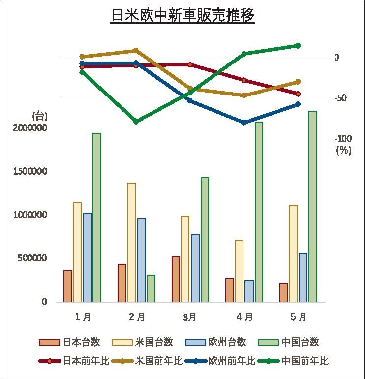 新型コロナウイルスの影響で大幅に低迷した世界の新車需要が徐々に戻りつつある。中国はいち早く市場が回復し、5月は前年同月から2桁増とさらに台数を伸ばした。米国や欧州も4月を底に5月はマイナス幅を縮めた。一方、国内は軽自動車が過去最大の落ち込...