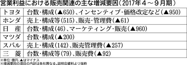 2017年4~9月期業績の営業利益を大きく左右したのが販売奨励金(インセンティブ)だ。米国での販売競争の激化などによりセダン系を中心にインセンティブを積み増す動きが加速している。メーカー各社は新型車の投入や供給台数の調整などによりインセン...
