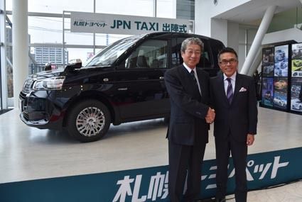 札幌トヨペット(沖田俊弥社長)は8日、トヨタ自動車が発売した新型タクシー「JPN TAXI(ジャパンタクシー)」の出陣式を本社・月寒店で開催した。地元の報道関係者に実車を披露。タクシー事業者の代表者らとともに、新型車の登場を祝った。インバ...