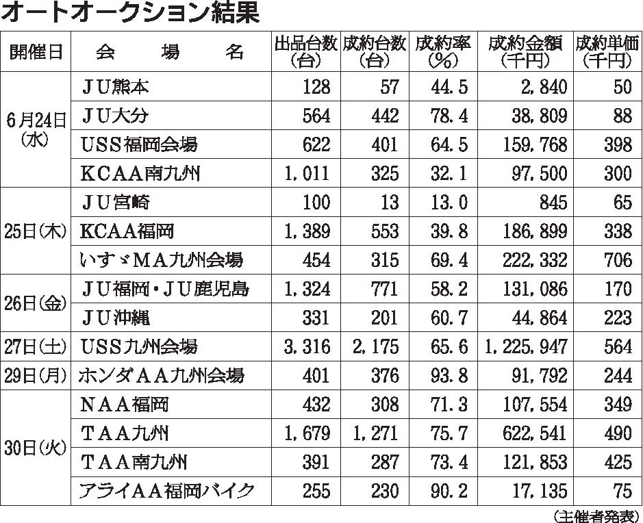 〈オートオークション結果〉九州地区 6/24~6/30