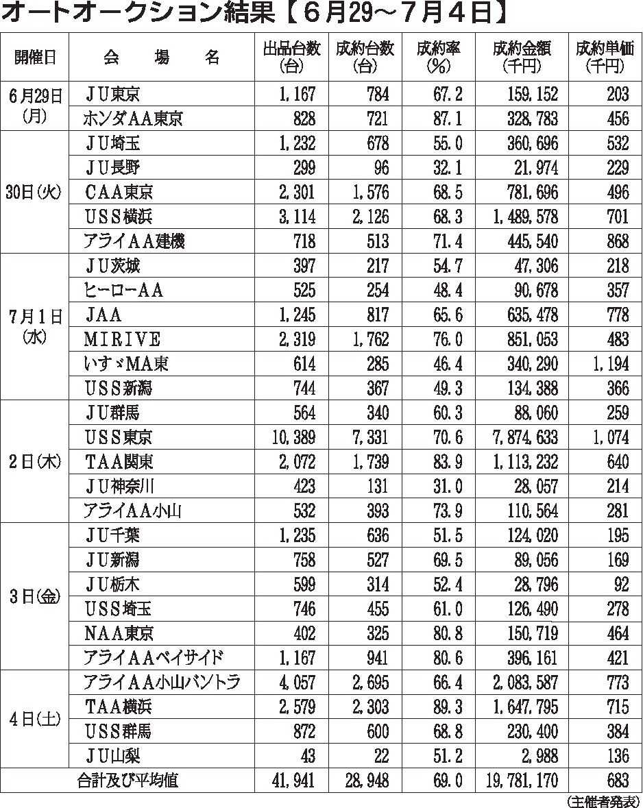 〈オートオークション結果【6月24日~7月4日】(首都圏)〉