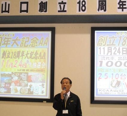 【山口】中古車オークション(AA)のKCAA(大峰高社長)は24日、山口市阿知須町の山口会場で「創立18周年大記念AA」を開催した。出品台数は1500台を超える活発な競りをみせた。 大峰社長は「タマ不足の中、多くの出品をいただき誠にありが...