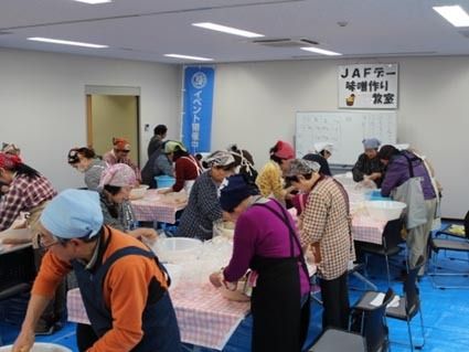 【富山】日本自動車連盟(JAF)富山支部(品川祐一郎支部長)は14日、支部事務所でJAFデーイベント「味噌作り教室」を開催し、抽選で選ばれた会員32人が参加し味噌作りに励んだ。 毎年、人気の高いイベントで、2月に続き2カ月連続の開催。2月...