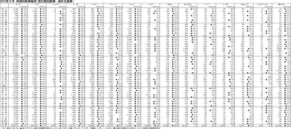 【2015年2月 地域別新車販売(含む軽自動車、海外生産車)】
