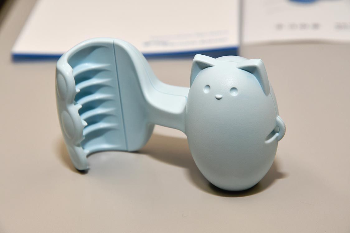 デザインと設計は社内のプロダクトデザイナーとエンジニアが共同で担当。CAE解析によって強度と使いやすさを確保しただけでなく、洗いやすい形状も併せ持つ。製造はメーター関連部品の協力会社であるサカイヤ(埼玉県川越市)に委託。コロナ禍をともに乗り越えるのが狙い。