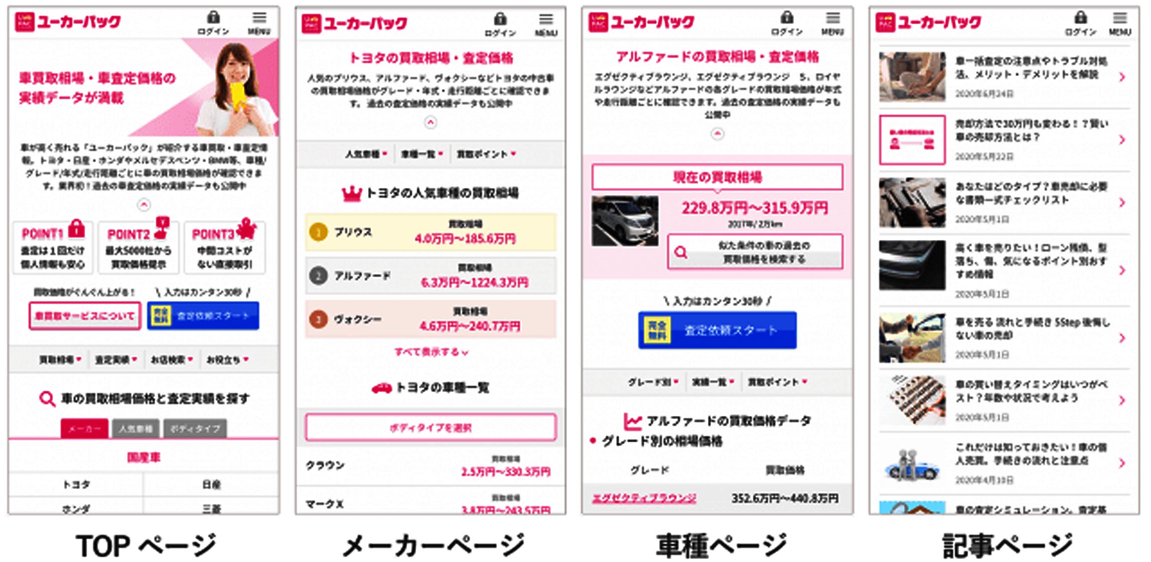 CtoBの中古車売買サービスを手がけるユーカーパック(中谷圭吾社長、東京都江戸川区)は、ユーザー向けウェブサイトを全面リニューアルした=写真。車種だけでなくグレード、年式、走行距離ごとの最新の買い取り相場を掲載し、過去の売却実績も閲覧でき...