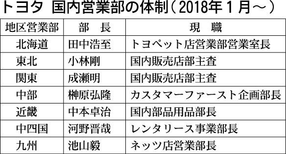 トヨタ自動車は、1月に国内販売事業本部を地域軸組織へ改編するのに伴い、七つの地域営業部ごとに2018年の新車販売計画を策定する。従来の4チャンネルごとの計画は引き続き残すものの、基本的に地域軸をベースとして、計画立案や進捗管理、拡販活動を...