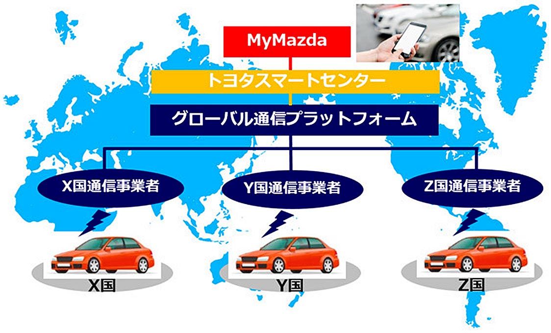KDDIはマツダが19年から提供しているコネクテッドカーと連携するスマートフォンアプリ「マイ・マツダ」を開発し、国内での通信回線を提供するとともに、マツダがコネクテッドサービスを展開している国ごとに通信回線の契約、管理を行っていた。