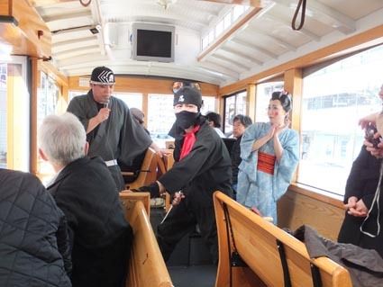 「サムライ&忍者サファリ」と銘打った新手の浅草バスツアーが企画された。4、5月の週末の土・日曜、祝日に催行される。JTBの国内旅行部門が地元・浅草の旅行会社と日の丸自動車興業の協力を得て企画したもの。浅草の街を単にバスで巡るだけでなく、サ...