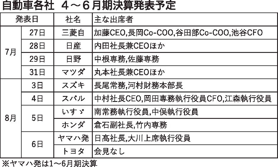 自動車メーカー9社の2020年第1四半期(4~6月期)決算発表が27日から始まる。本決算では21年3月期業績予想の公表を見送った7社のうち、多くが通期の見通しを示すとみられる。新型コロナウイルスが直撃した第1四半期の業績は、過去になく厳し...