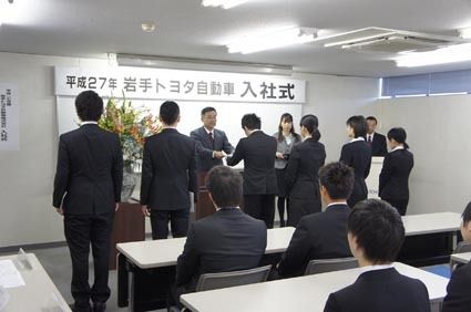 ◆岩手トヨタ、13人の門出を祝福 積極的に学んで 【盛岡】岩手トヨタ(小林義弘社長)は1日、盛岡市の本社で「2015年入社式」を開催した。役員や管理職が見守るなか、小林社長から新入社員13人に辞令が手渡され、新社会人としての門出を祝福した...