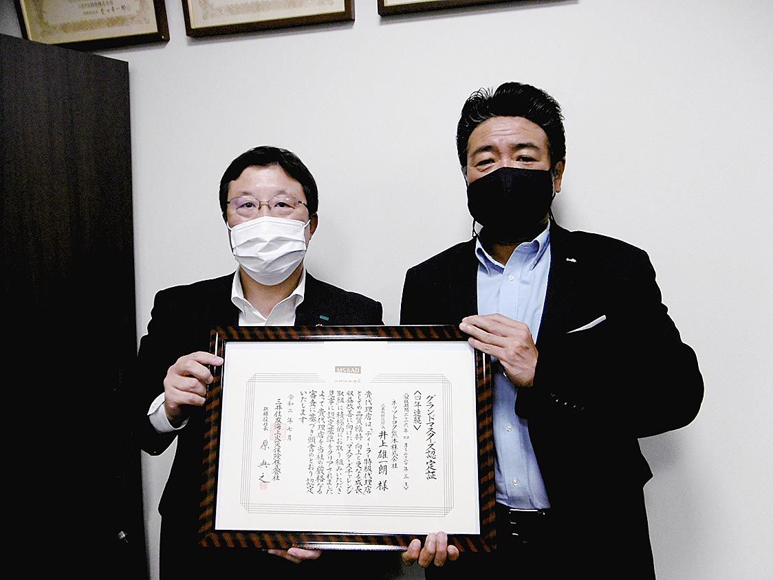 【熊本】ネッツトヨタ熊本(井上雄一朗社長)は三井住友海上火災保険のディーラー特級の最高ランク「グランドマスターズ」の認定を取得した。22日に熊本市東区の本社で認定証の授与式を開催し、三井住友海上の宮脇英寿熊本支店長が井上社長に認定証を手渡...