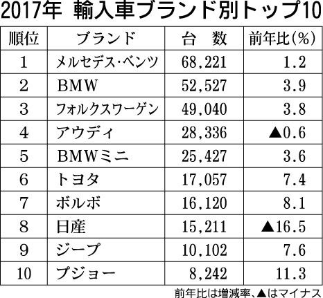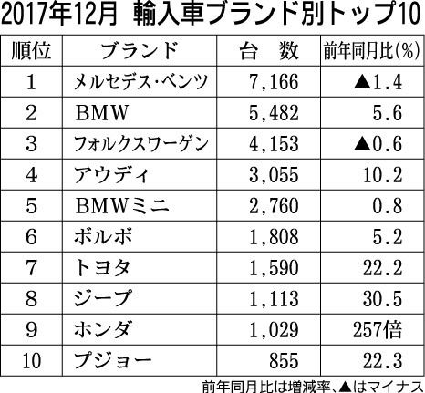 【2017年/2017年12月 輸入車ブランド別トップ10】