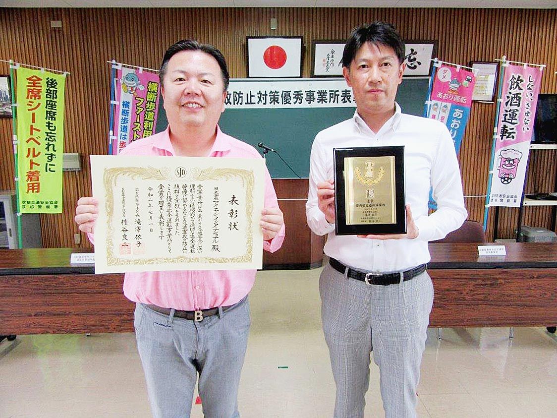 【大津】輸入車販売のアイエーシーインターナショナル(今村英二代表取締役会長兼CEO)は、適切な安全運転管理に努めたなどとして、滋賀県警察本部から「交通事故防止対策優秀事業所表彰」を受けた。 17日に彦根警察署(彦根市)で開かれた表彰式で今...