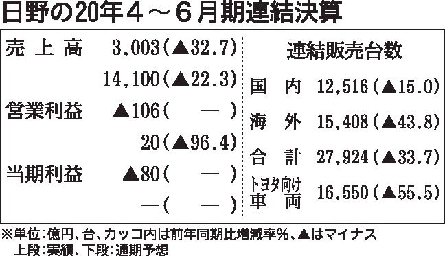 日野自動車は29日に発表した2021年3月期通期連結業績予想で、営業利益20億円の黒字を確保する見通しを発表した。新型コロナウイルスの感染拡大による販売面への影響は大きいものの、固定費の圧縮や原価低減努力により黒字化を維持する。
